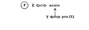 Условие (PS) можно свести к условию (S), переписав послед нее следующим образом: «А-атом каузально связан с состоянием, связанным с действием «желать» в Р-атоме». Поэтому, если бы мы заботились об экономности аксиоматики, то можно было бы ограничиться двумя условиями. Но это неявным образом лишило бы S -атомы всякой независимой роли, а для нас более удобно таковую роль сохранить.
