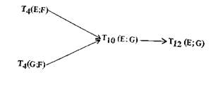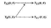 Три горизонтальные линии репрезентируют здесь соответственно мотивацию, действие и цель; диагональные (одинарная, двойная и тройная) связи представляют соответственно замысел, агентность* и каузацию. Три деятеля Е, F и G могут полностью различаться, полностью совпадать или совпадать попарно. (Было бы интересно, хотя мы здесь этого и не делаем, проследить спе цифические характеристики пяти возникающих при этом возможностей — ЕЕЕ, EEF, EFE, EFF, EFG.)