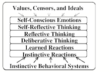 In the usual view of how human minds grow, each child begins with instinctive reactions, but then goes through stages of mental growth that overlay these with additional layers and levels of goals. Those older instincts may still remain, but these new resources gain increasing control—until we can think about our own motives and goals, and perhaps try to change or reformulate them.