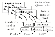 Every word, event, idea, or thing can have many different meanings to us. When you hear, "Charles gave Joan the book,’ that might make you think of that book as a physical object, or as a possession or possible gift. And you could interpret this ‘giving act’ in at least these three different realms of thought: